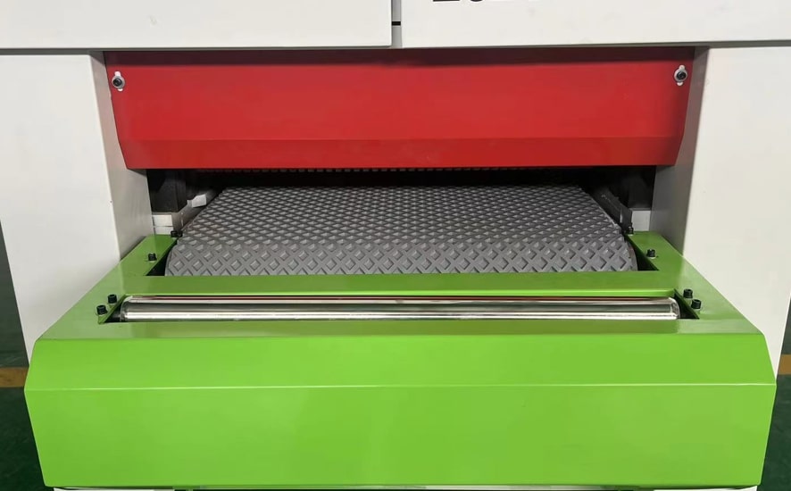 Станок оснащен двумя шлифовальными узлами: R (ролик) для калибрования, и RP (комбинированный: ролик + утюжок) для чистового шлифования поверхности. Станок отличается массивностью, высокой производительностью и надежностью.