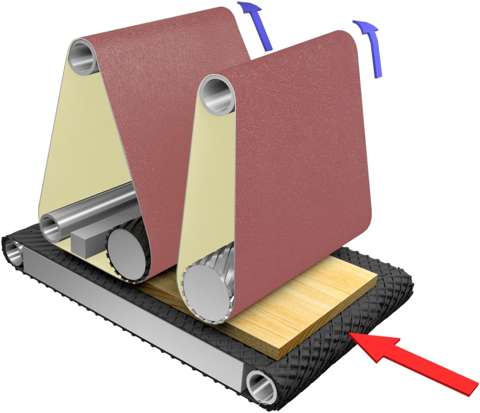 ОТДЕЛЬНЫЙ ПРИВОД ШЛИФОВАЛЬНЫХ УЗЛОВ Каждый шлифовальный узел имеет привод от отдельного двигателя, что гарантирует стабильную работу станка при тяжелых нагрузках. Остановка вращения шлифовальных лент осуществляется с помощью тормозных колодок. |