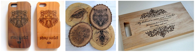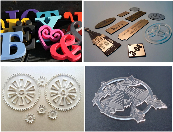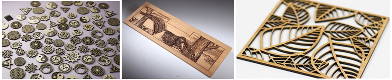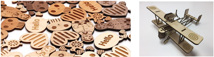 Основное использование в обработке дерева, фанеры. Пластики: акрил, оргстекло, полистирол, ПЭТ. Ткани: натуральные, полусинтетические, синтетические, стеклоткани, фетр. А также резины, картона и бумаги и пр. Расширением сферы применения этих станков является возможность гравировки на камне, стекле и любой керамики.