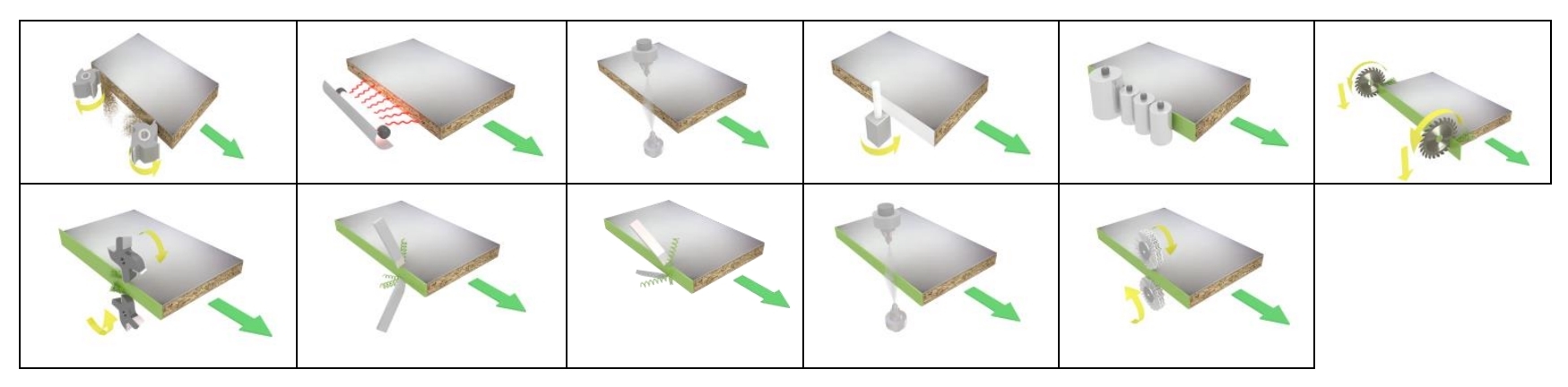 Предназначен для высокоскоростного облицовывания прямолинейных кромок мебельных щитов и заготовок натуральным полосовым и синтетическим рулонным материалом с автоматической перенастройкой на толщину кромки до 3 мм.