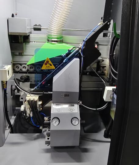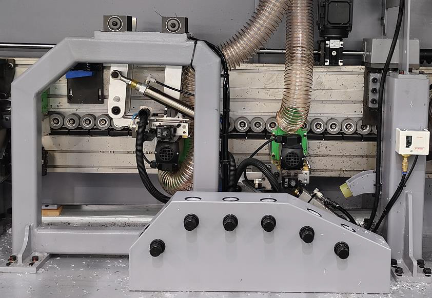 Быстрая перенастройка узла с помощью пневматики на разные типы кромки. |