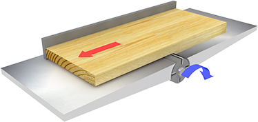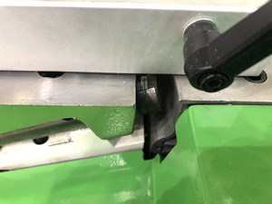 МЕХАНИЗМ ОТКИДЫВАНИЯ СТОЛОВ Столы откидываются поочередно, и базируются на специальных упорах, которые предотвращают повреждение станины станка. Принимающий фуговальный стол снабжен механизмом стопорения.