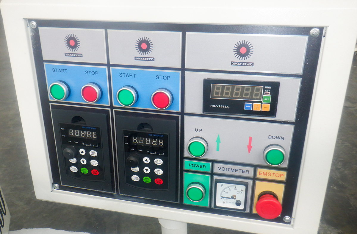 - электронный дисплей высоты стола; Станок оснащен двумя инверторами для плавной регулировки скорости вращения щеток, что позволяет настроить оптимальный режим шлифовки. |