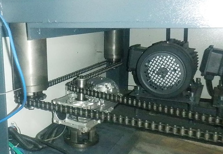 КРЕПЛЕНИЕ СТОЛА НА 4-Х ОПОРАХ Гарантирует жесткое и стабильное положение стола в процессе обработки и настройки, что в свою очередь обеспечивает стабильное качество получаемой продукции. ПРИВОД ПОДЪЕМА СТОЛА Осуществляется от отдельного двигателя через редуктор и цепную передачу, что обеспечивает синхронную работу 4-х винтов. |